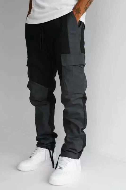 Large Pocket Stitching Trousers Men's Loose Feet