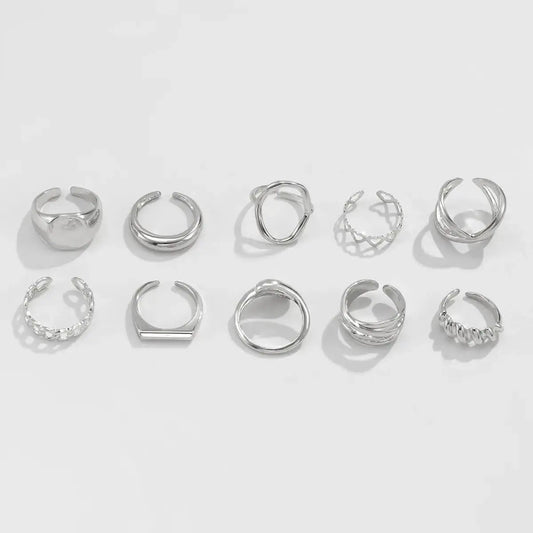 10-Piece Alloy Geometric Ring